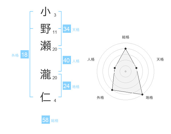 小野瀬 瀧仁さんを姓名の画数から五運を鑑定