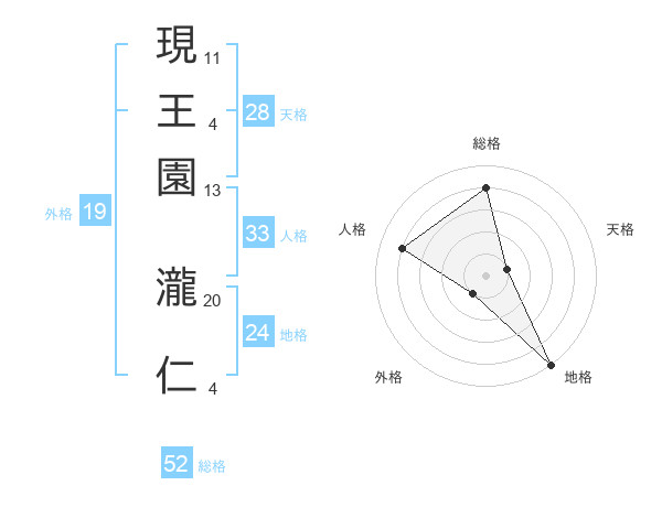 現王園 瀧仁さんの総格は52画の4点!