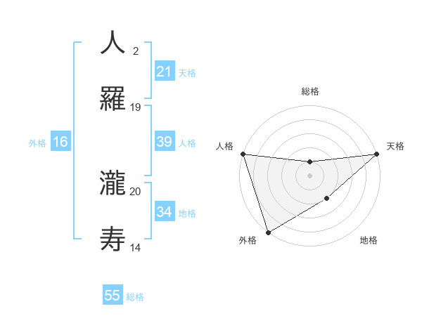 人羅 瀧寿さんの人格は39画の5点!