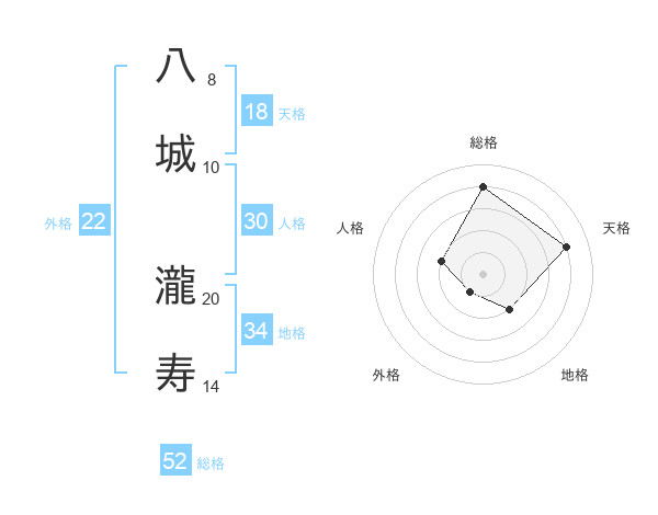 八城 瀧寿さんの総格は52画の4点!
