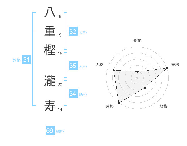 八重樫 瀧寿さんを姓名の画数から五運を鑑定