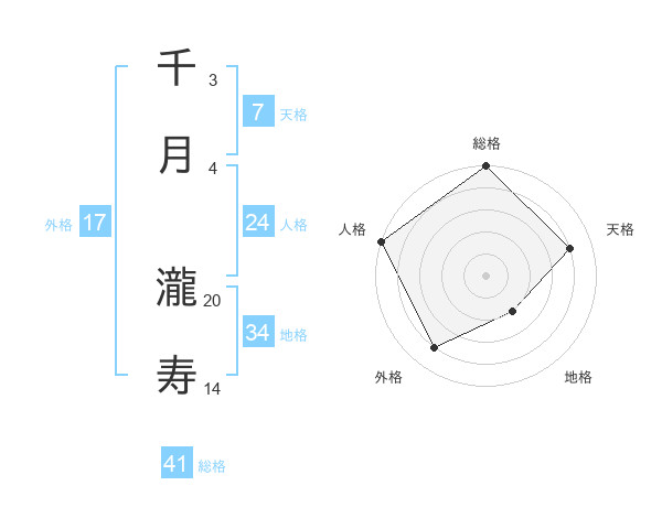 千月 瀧寿さんの総格は41画の5点!