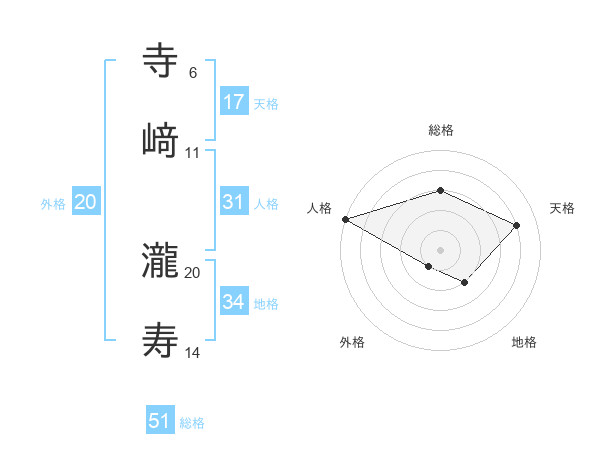寺﨑 瀧寿さんの総格は51画の3点!