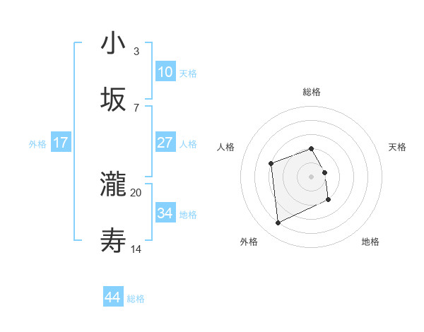 小坂 瀧寿さんを姓名の画数から五運を鑑定