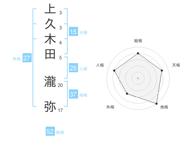 上久木田 瀧弥さんの総格は52画の4点!