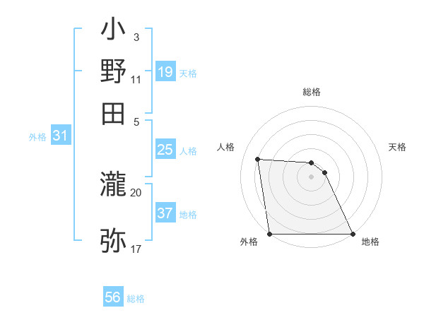 小野田 瀧弥さんの外格は31画の5点!