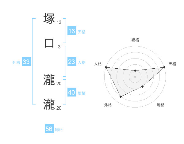 塚口 瀧瀧さんを姓名の画数から五運を鑑定