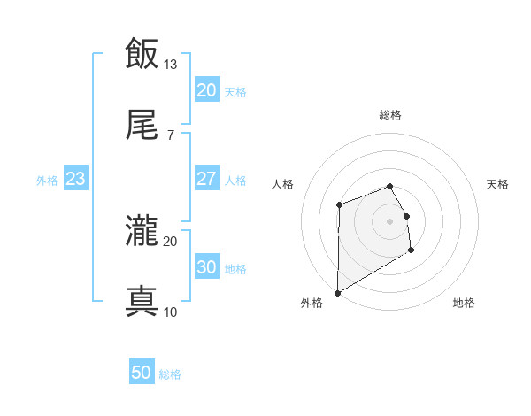 飯尾 瀧真さんの天格は20画の1点!