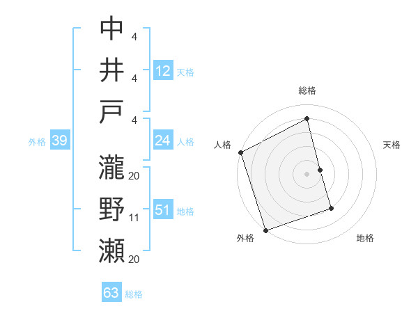 中井戸 瀧野瀬さんの地格は51画の3点!