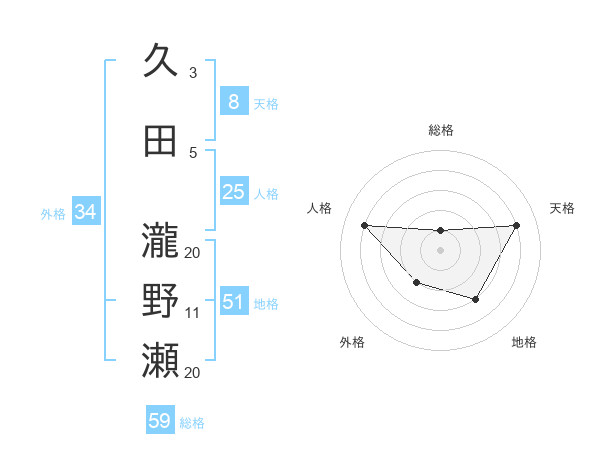 久田 瀧野瀬さんを姓名の画数から五運を鑑定