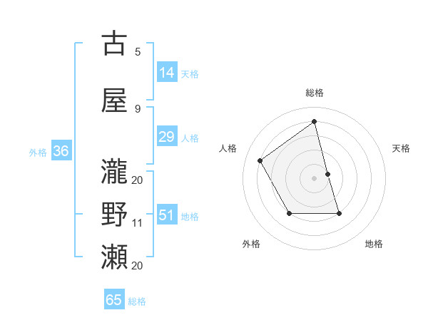 古屋 瀧野瀬さんを姓名の画数から五運を鑑定