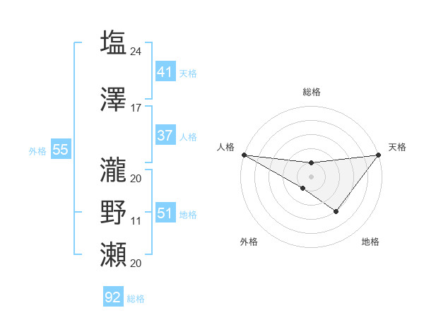 塩澤 瀧野瀬さんの地格は51画の3点!