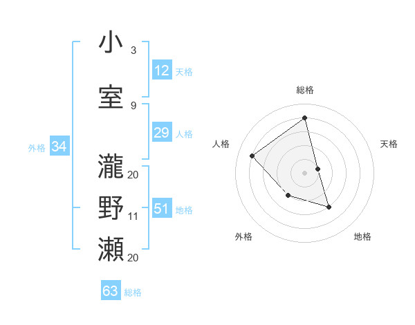 小室 瀧野瀬さんを姓名の画数から五運を鑑定