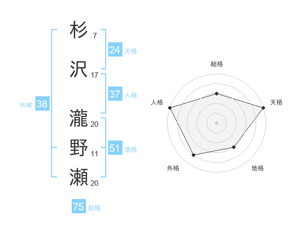 杉沢 瀧野瀬さんの総格は75画の3点!