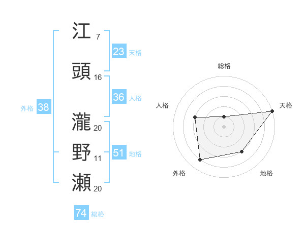 江頭 瀧野瀬さんを姓名の画数から五運を鑑定