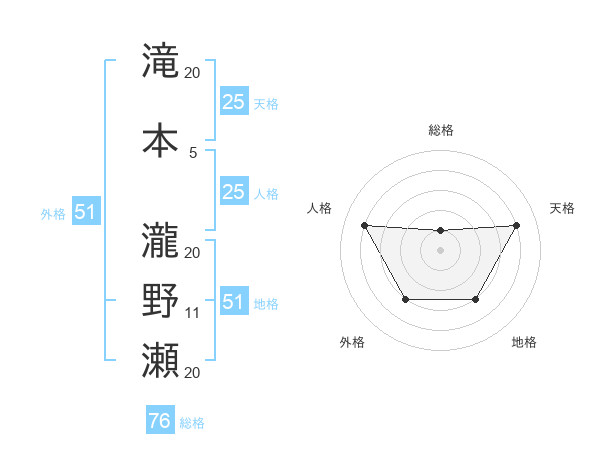 滝本 瀧野瀬さんを姓名の画数から五運を鑑定