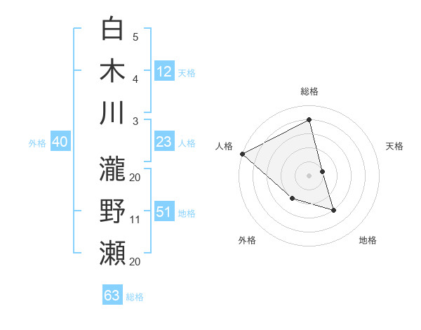 白木川 瀧野瀬さんを姓名の画数から五運を鑑定