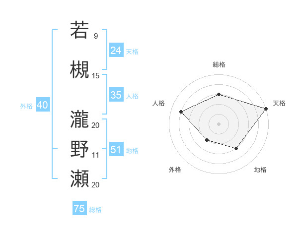 若槻 瀧野瀬さんの総格は75画の3点!