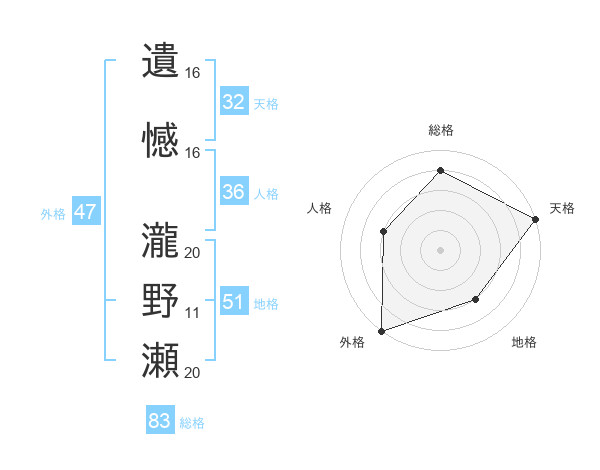 遺憾 瀧野瀬さんの総格は83画の4点!