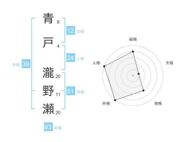 青戸 瀧野瀬さんの外格は39画の5点!