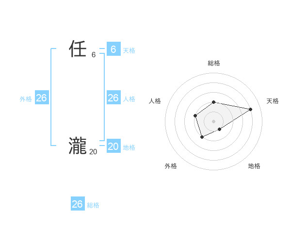 任 瀧さんの総格は26画の2点!
