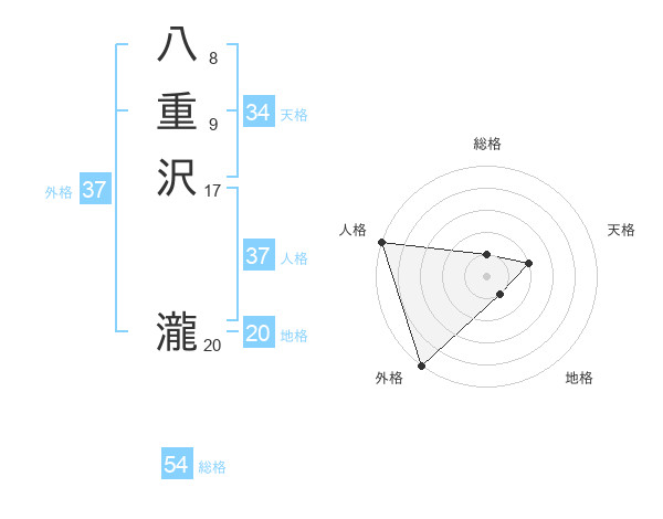 八重沢 瀧さんの外格は37画の5点!