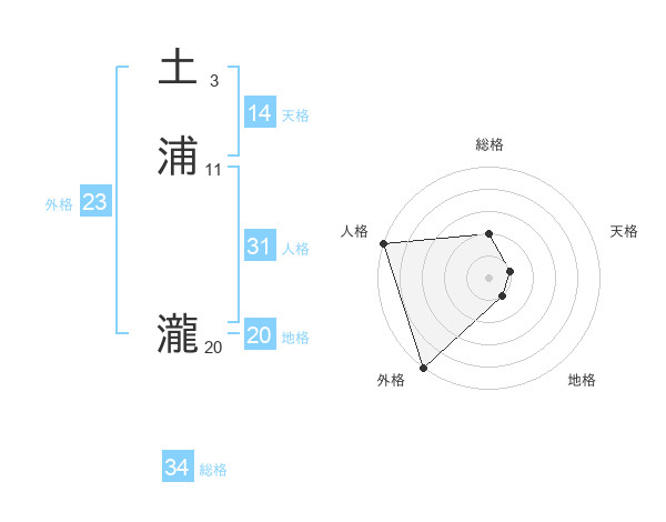 土浦 瀧さんの総格は34画の2点!