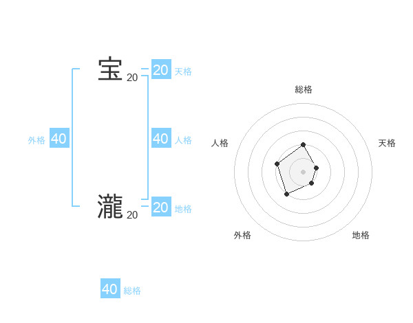 宝 瀧さんの総格は40画の2点!