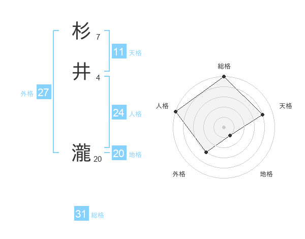 杉井 瀧さんを姓名の画数から五運を鑑定