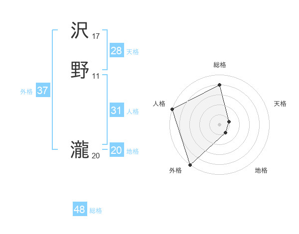 沢野 瀧さんの総格は48画の4点!