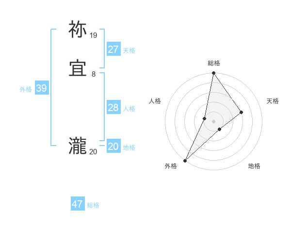 祢宜 瀧さんの総格は47画の5点!
