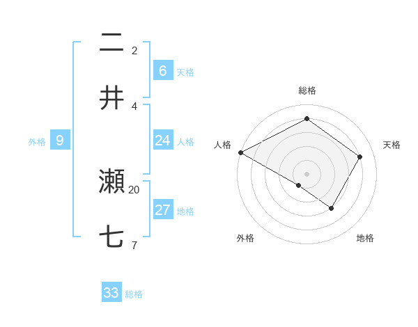 二井 瀬七さんを姓名の画数から五運を鑑定