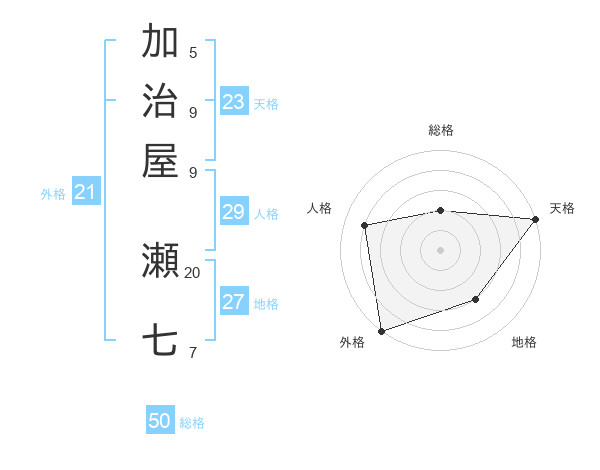 加治屋 瀬七さんを姓名の画数から五運を鑑定