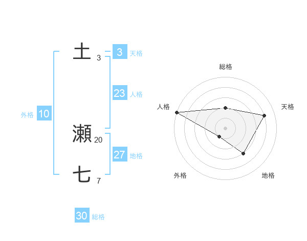 土 瀬七さんの総格は30画の2点!
