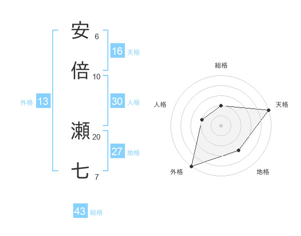 安倍 瀬七さんを姓名の画数から五運を鑑定