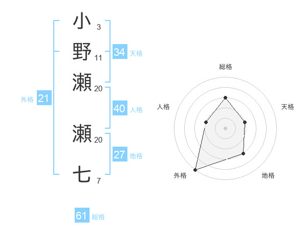 小野瀬 瀬七さんを姓名の画数から五運を鑑定
