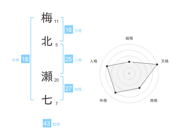 梅北 瀬七さんを姓名の画数から五運を鑑定