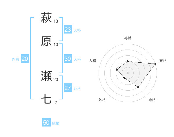 萩原 瀬七さんの総格は50画の2点!