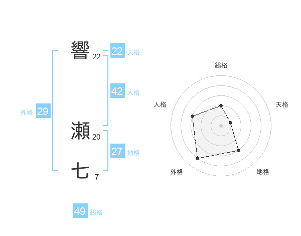 響 瀬七さんの総格は49画の2点!