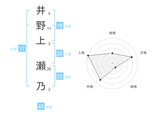 井野上 瀬乃さんの総格は40画の2点