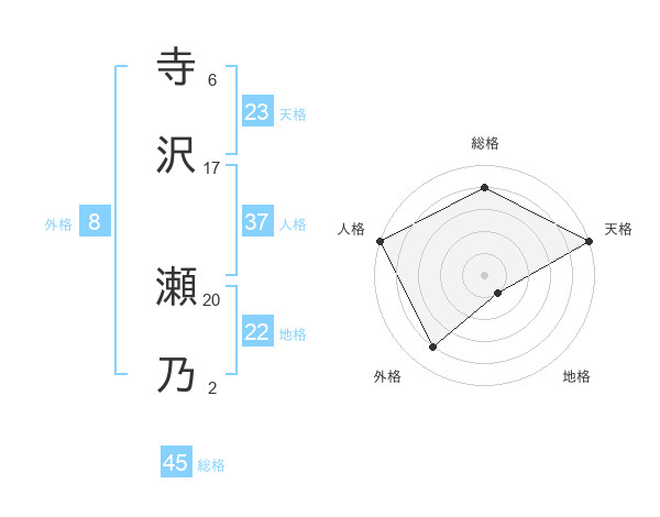 寺沢 瀬乃さんの総格は45画の4点!