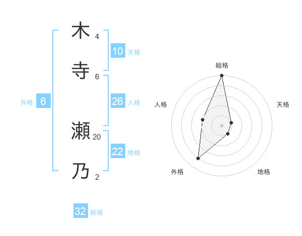 木寺 瀬乃さんの総格は32画の5点!
