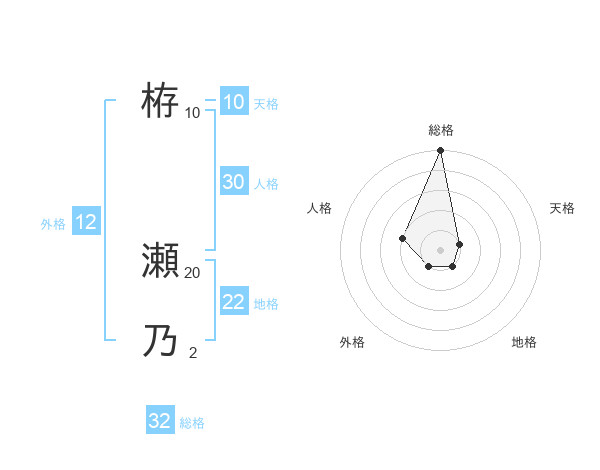 栫 瀬乃さんの総格は32画の5点!