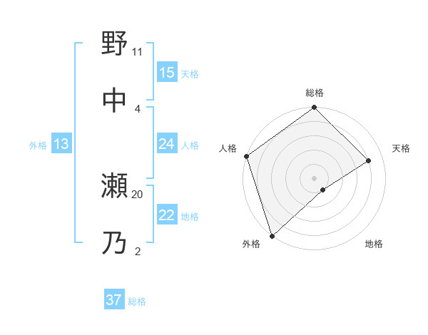 野中 瀬乃さんの総格は37画の5点!