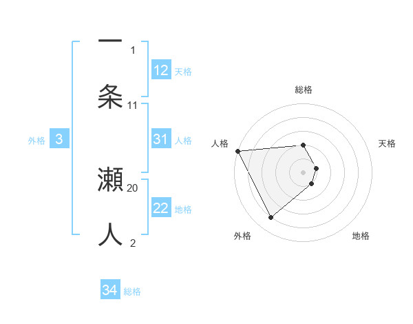 一条 瀬人さんを姓名の画数から五運を鑑定