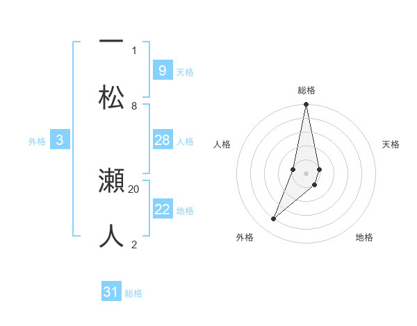 一松 瀬人さんの総格は31画の5点!