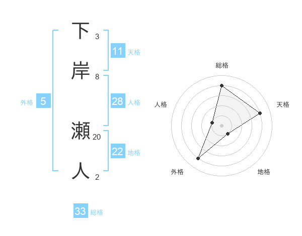 下岸 瀬人さんの総格は33画の4点!