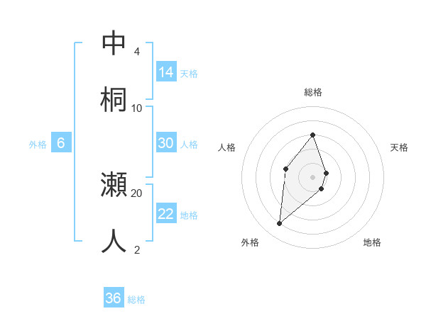 中桐 瀬人さんの天格は14画の1点!