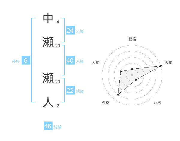 中瀬 瀬人さんの天格は24画の5点!