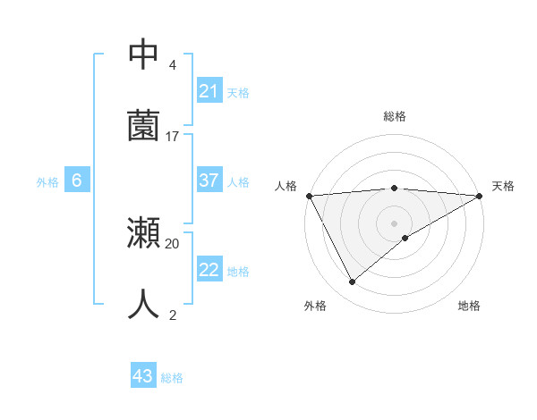 中薗 瀬人さんの天格は21画の5点!